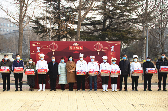 “天天吃师傅们做的饭,即使寒假期间,大家还在为留校师生的吃住尽职尽责,真的很辛苦,特别向大家表示感谢,给大家拜年!”