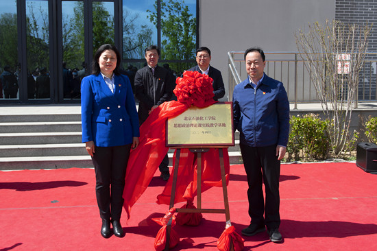 4月16日下午,北京石油化工学院思想政治理论课实践教学基地揭牌仪式在密云水库展览展示中心举行。密云区委书记潘临珠,密云区委副书记、政法委书记、区人大常委会主任朱柏成,副区长季荣旺,北京石油化工学院党委书记刘颖,党委副书记、校长蒋毅坚等领导班子成员,以及密云区委办公室主任刘长礼、园林局局长田立文、文旅局局长赵志政、北京石油化工学院全体处级干部、师生代表等出席。北京石油化工学院党委副书记孙晓峰主持仪式。