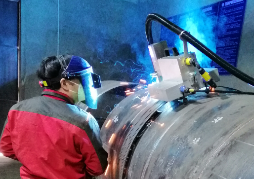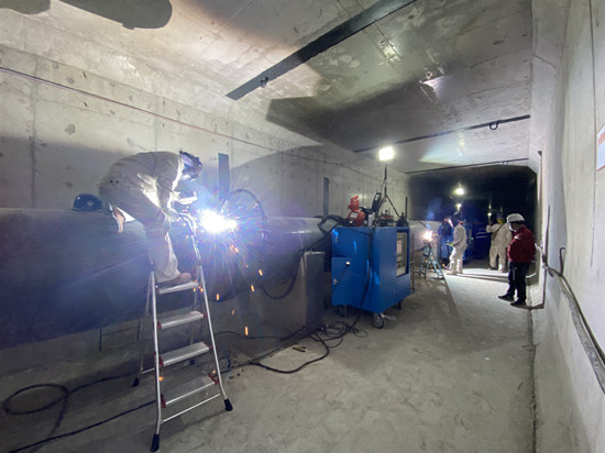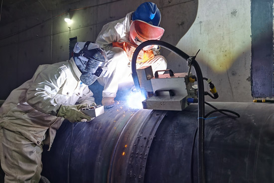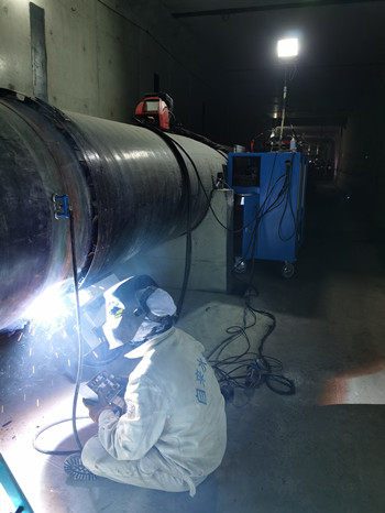 石景山区供水管网一期工程地下管廊给水管道焊接工期紧、任务急,要求在5月30日前完成规定标段给水管道的铺设焊接任务,北京市自来水集团禹通市政工程有限公司工程项目部组织了四支施工队伍,其中3支人工焊队伍、1支自动焊队伍。自动焊队伍配备2套工作站,每套工作站由1名焊工及1名辅助工组成。我校机械工程学院能源工程先进连接技术研究中心(北京市高等学校工程研究中心)罗雨副教授率硕士研究生张舒心、王东尧、方舟、张昊楠、吉天亮等负责自动焊系统的现场技术服务指导。从焊接施工的环境条件来看,管廊内施工队伍多,现场供电、管道运输、坡口组对及手工焊接设备用电对自动焊系统存在一定干扰,且自动焊施工操作空间受限,管廊内烟尘飞扬,缺氧严重。尽管如此,自动焊队伍克服诸多困难,提前完成了约定的施工任务。此次管道自动焊工程共完成1.2公里管道铺设,累积完成106道坡口的焊接,合格率近100%。自动焊施工效率高,能完成日均10道坡口的焊接任务量,是人工焊条焊接施工效率的2倍以上。此外,施工焊接过程中共有8位焊工完成现场操作学习,并独自完成自动焊设备的现场操作应用。
