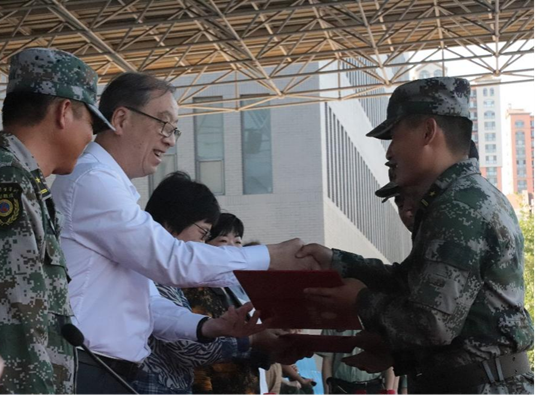 5月30日下午,北京石油化工学院2019级学生军训闭营式在清源校区操场隆重举行。党委副书记、院长蒋毅坚,党委副书记孙晓峰,军训团团长王贵生,学校相关部门负责人、各教学院系党政领导、军训团带队教师出席闭营仪式。仪式由学生工作部(处)、武装部部长万一主持。
