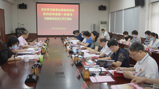 6月28日上午,党史学习教育北京教育系统第四指导组一行四人来到学校,对党史学习教育进行指导。学校党史学习教育领导小组及其办公室成员、党史学习教育学校指导组成员参加了工作汇报会。