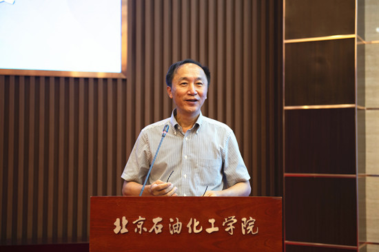 (北京石油化工学院新材料与化工学院副院长戴玉华教授主持大赛开幕式)