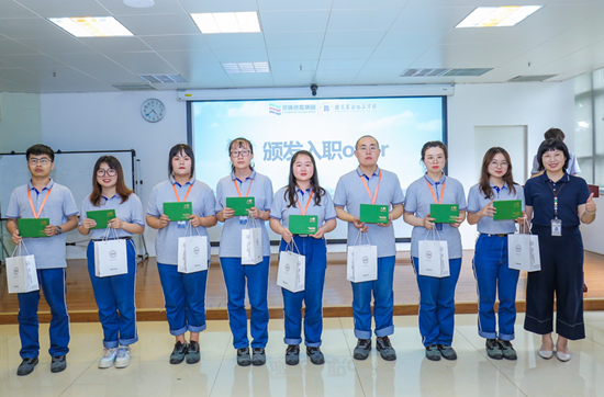 7月15日,在山东京博控股集团有限公司,一场特殊的学训结业仪式正在进行。公司融创院王雪副院长为64名研究生颁发了学训结业证书,并为王旭、贾鑫、刘馨月等8名研究生颁发了入职offer。获入职offer的研究生毕业后无需面试和见习,可以直接入职京博控股集团有限公司,并按照管培生待遇进行重点培养。