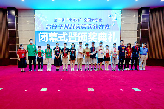7月29日上午9:00,第二届“大龙杯”全国大学生高分子材料实验实践大赛在圆满完成各项任务后,在北京石油化工学院致远讲堂落下帷幕。教育部高等学校材料类专业教指委委员、北京市政协科技委员会副主任郭文莉教授,我校蒋毅坚院长,教育部高等学校材料类专业教指委委员、华东理工大学林绍梁教授,“双实”大赛竞赛委员会秘书长、东华大学吴文华教授等出席闭幕式。北京石油化工学院新材料与化工学院副院长戴玉华教授主持闭幕式。