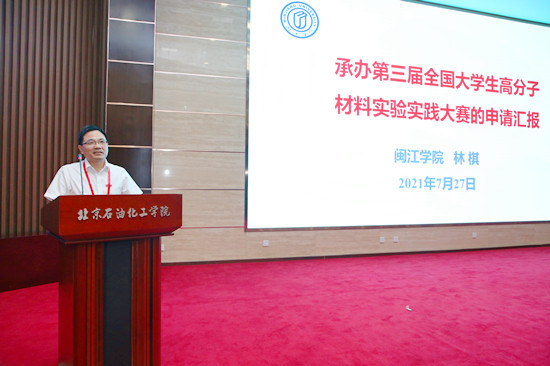 北京石油化工学院新材料与化工学院院长靳海波教授代表大赛承办方致辞,对大赛中同学们的团结协作、指导老师的辛勤付出和评审老师的恪尽职守表示了崇高的敬意。他指出,实验实践大赛是促进科教融合,教学和实验能力相长,强化学生的动手能力和实践能力,促进学生学科竞赛与创新实践能力的双提高。他表示,希望今后以此平台加深与兄弟院校之间的沟通交流,加强合作,共同肩负起培养创新型人才的重任,共同推进和提升人才培养质量。