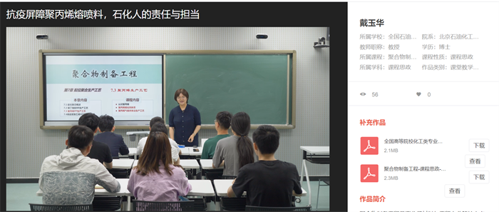 戴玉华教授团队以高分子材料与工程专业的核心课《聚合物制备工程》为参赛课程,深入挖掘课程中涵盖的课程思政元素。该课程将聚合物制备的基础知识(聚合原理、生产工艺、影响因素等),与规模化高分子产品生产工艺的设计、改进能力及绿色发展、生态环保的理念进行有机融合,着重培养学生解决复杂工程问题的综合能力与职业素养。在7月21日的线上说课环节中,戴玉华教授在全面说明整体课程思政设计思路后,一一展示了参赛提交课程思政教学案例内容,并以“抗疫屏障聚丙烯熔喷料,北石化人的责任与担当”案例为例,详细介绍了如何在专业课程中开展课程思政。