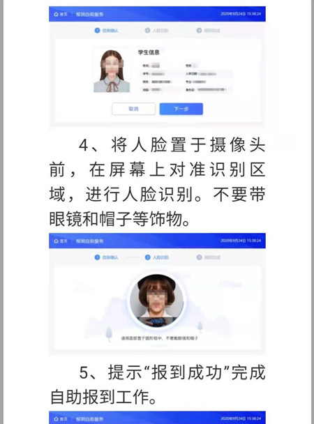 为更加方便学生注册报到,今年秋季学期,学校将启用人脸识别进行注册,注册的具体方法老生新生相同,区别在于老生使用的是台式注册机,新生使用的是移动端现场注册。