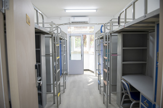 (康庄宿舍里的小阳台加装了推拉门,宿舍里更加干净、明亮、温暖)