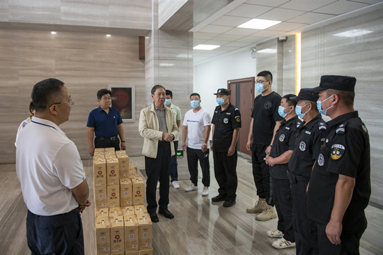 9月6日,新学期伊始,副校长张泉利和党委常委、教育基金会理事长何晓红、安全保卫部(处)长冯建强、后勤基建处长吕德胜共同看望了暑假期间坚守岗位的安保、后勤和疫情防控的工作人员,对他们表示慰问并赠送学校教育基金会捐赠的慰问品。