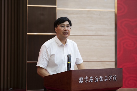 罗学科校长在致辞中表示,北石化作为一所具有鲜明工程实践特色的应用型大学,将大力弘扬科学家精神,学习他们的家国情怀与爱国热忱,学习他们不慕名利、潜心研究的奉献精神。