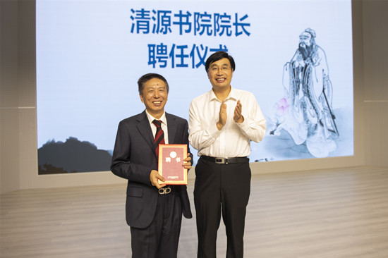 罗学科为杨荣祥教授颁发了聘书。杨荣祥教授发表了受聘感言。他表示,受聘担任清源书院院长,深感责任重大,今后要明确书院宗旨,传播人文知识,弘扬人文精神,强化以美育人,活跃校园文化。书院将为全校开设出让学生满意的人文通识教育课程,建设具有石化特色的人文通识教育课程体系,开展多种文化艺术活动。