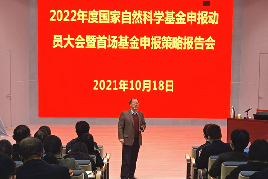 为做好2022年度国家自然科学基金和国家社会科学基金项目申报工作,充分调动广大教师申报基金项目的积极性,提升项目申请书的总体撰写质量,10月18日下午,学校在清源校区召开2022年度国家基金项目申报动员大会暨首场申报辅导报告会。各二级单位科研工作分管领导、近五年入职的青年教师共160余人参加会议,会议由副院长陈家庆主持。