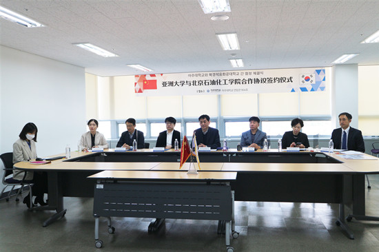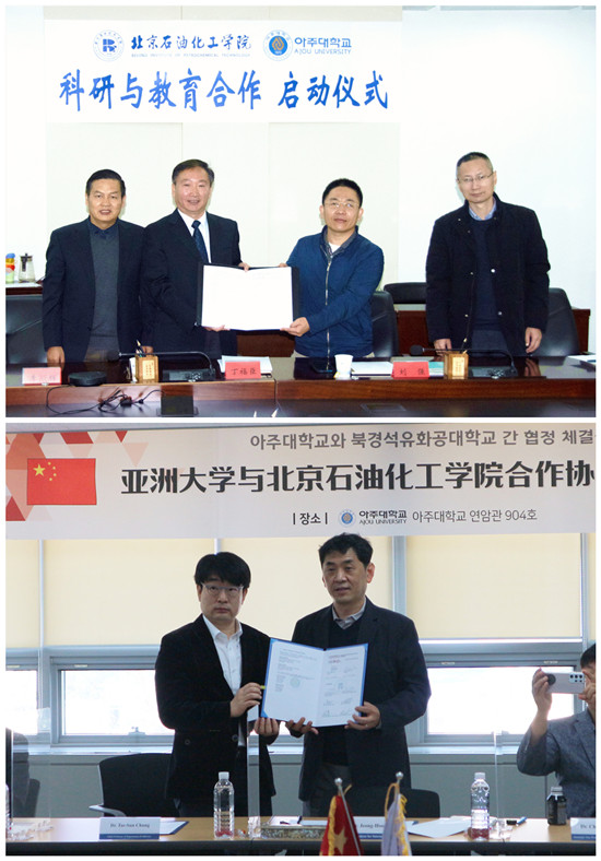 在两校与会人员的共同见证下,校长助理丁福臣教授和亚洲大学副校长孙祯焄教授代表双方签署了《北京石油化工学院-韩国亚洲大学科研与教育合作谅解备忘录》。根据备忘录,双方将在人工智能、计算机科学与技术等领域开展联合博士生培养项目,组织科研人员和研究生进行学术交流访问,共同开展相关领域的学术研究。设立“中韩人工智能国际联合研究中心”联合培养博士研究生,标志着我校人工智能研究院的人才培养进入高质量发展阶段,这将有力推动北京石油化工学院高层次人才培养和学科建设。