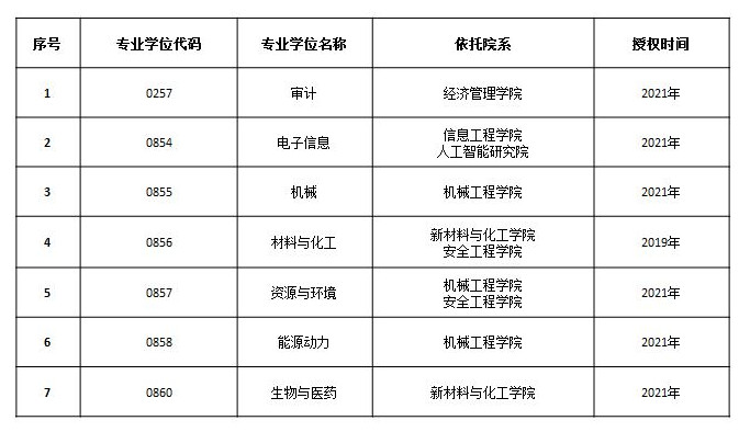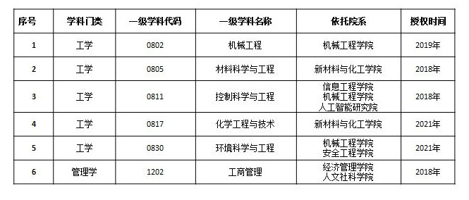 近日,根据国务院学位委员会《关于下达2020年审核增列的博士、硕士学位授权点名单的通知》(学位〔2021〕14号)和北京市学位办相关通知,我校获批新增化学工程与技术(0817)、环境科学与工程(0830)2个一级学科硕士点,获批新增审计(0257)和电子信息(0854)、机械(0855)、资源与环境(0857)、能源动力(0858)、生物与医药(0860)等6个硕士专业学位授权点。截至目前,我校拥有一级学科硕士点6个、专业学位硕士点7个,共计13个硕士学位点。