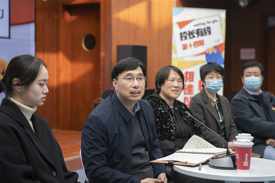 学校办公室、学生处、教务处、研究生处、后勤基建处、校团委等部门相关负责同志参加了“校长有约”,团委办公室主任蒋林轩同学主持座谈。