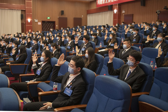罗学科谈到,本次大会的召开对全校学生学习贯彻党的十九届六中全会精神、落实学校“十四五”发展规划目标具有重要意义。青年学生要主动学习党的十九届六中全会精神,从三个方面践行“请党放心,强国有我”的誓言:一是要认清时代、把握方位,做胸怀“两个大局”、心系“国之大者”的北石化青年;二是要增长见识、涤荡思维,做读懂“中国精神”、讲好“榜样故事”的北石化青年;三是要找准位置、有所作为,做无愧“青春年华”、践行“使命担当”的北石化青年。他鼓励同学们,以新时代青年之志气、骨气、底气担负起实现中华民族伟大复兴之重任。