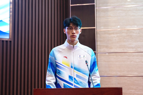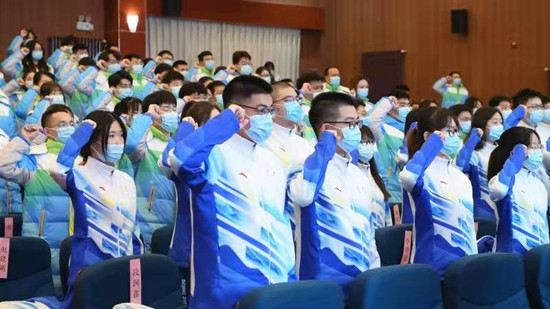 在志愿者代表王鹏的领誓下,全体志愿者面对队旗庄严宣誓,在“为祖国争光,为冬奥添彩”的铿锵誓言中发出时代最强音。学生志愿者代表孙依凡、教师志愿者代表王鑫分别发言,表达了积极服务冬奥的信心和决心,他们表示,将在服务岗位上勤恳踏实、无私奉献,以一流的精神面貌、过硬的服务本领共筑北京冬奥会的激情与荣耀,展现新时代青年的责任与担当!