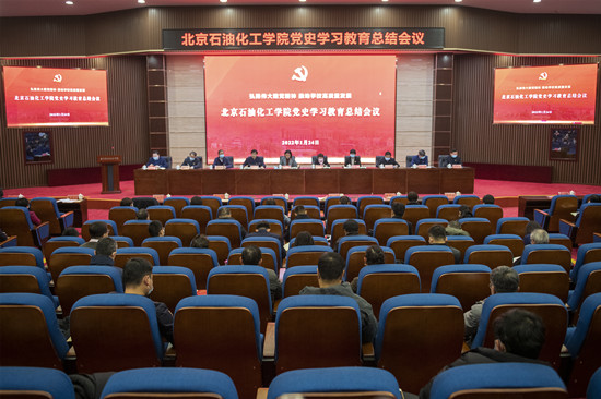 1月24日下午,北京石油化工学院召开党史学习教育总结会议,深入学习贯彻习近平总书记的重要指示和中央、北京市党史学习教育总结会议精神,全面总结回顾学校党史学习教育开展情况,部署巩固拓展党史学习教育成果,把学习贯彻党的十九届六中全会精神不断引向深入。