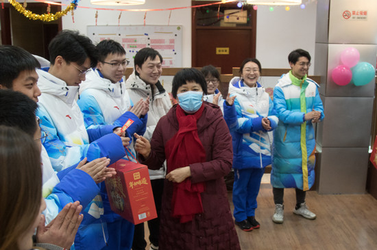 学校领导们多次慰问志愿者们,关心着他们的身体和心里健康,叮嘱大家做好个人防护、冬奥志愿服务、学业学习等工作。刘颖、罗学科一起向同学们发放过年红包和新年大礼包,并和同学们一起贴春联。王伟代表学校领导班子向同学们表达美好祝愿。