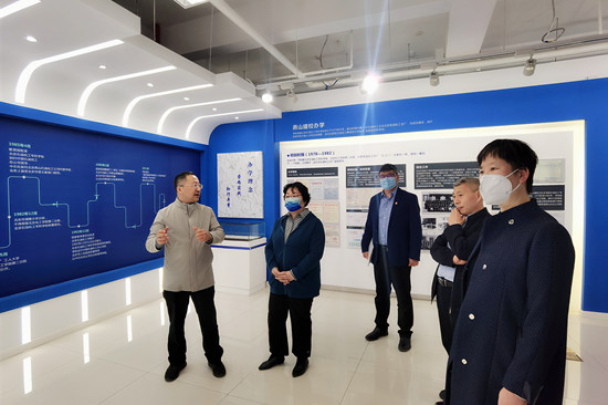 会后,李冬茹一行在王伟、何晓红常委陪同下参观了学校校史馆、光机电装备技术北京市重点实验室。