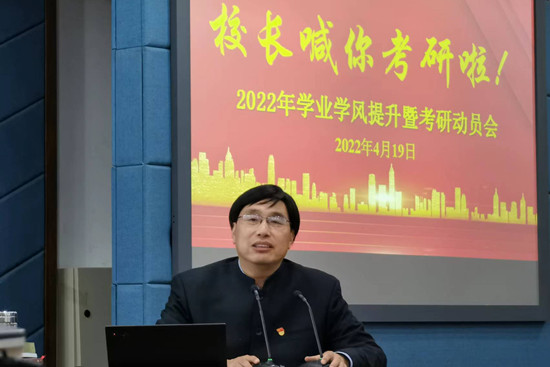 为进一步提高人才培养质量,促进学风建设工作与考研就业相互作用、相互渗透,形成“抓考研,促学风”的良好氛围,4月19日晚,学校在第七会议室组织召开2022年度学业学风提升暨考研动员大会。党委副书记、院长罗学科教授,副院长陈家庆教授,副院长王伟教授,各职能部处,学院领导以及部分学生30名代表在现场参会,201名教师、全体2019级本科生及低年级本科生近2000人以线上方式参会。会议由王伟主持。