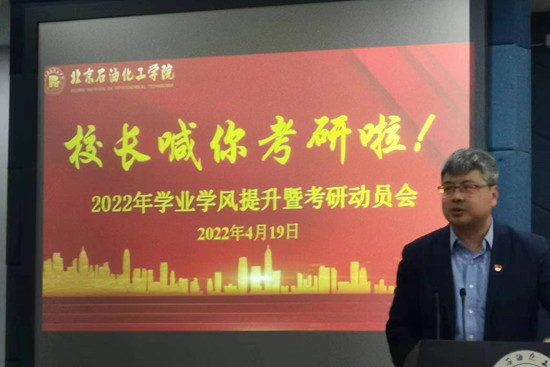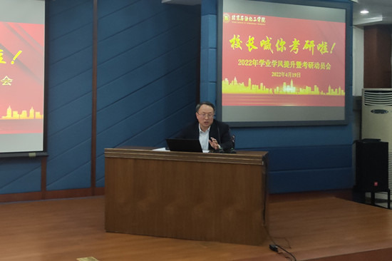 陈家庆介绍了我校的办学历程和学科发展水平,他谈到,我校有博士学位的教师占教师总人数的65%;学校有国家级和省部级高层次人才50人,居北京市属高校前列;学生读研期间成果丰硕,我校研究生论文水平较高,近几年研究生就业率为100%。陈校长鼓励同学们克服困难,在研究生招生考试中取得佳绩。