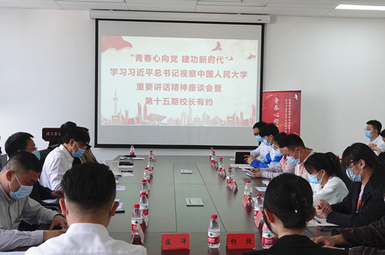 5月4日下午14时,在建团百年之际的青年节,我校举办“青春心向党 建功新时代——学习习近平总书记视察中国人民大学重要讲话精神座谈会暨第十五期校长有约”活动。院长罗学科通过线上线下相结合的方式与50余名学生代表共同学习习近平总书记视察中国人民大学时的重要讲话精神,共度“五四”青年节。相关职能部门负责人参加活动。活动由校学生会学生杨捷主持。