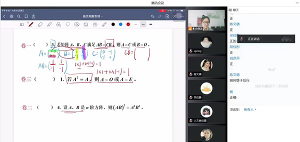 近日,学校大学生讲师团开展了“线性代数”系列学业辅导授课与答疑活动。受疫情影响,此次辅导形式主要通过腾讯会议直播、微信群答疑等方式展开,共计144位同学参与了在线听课。