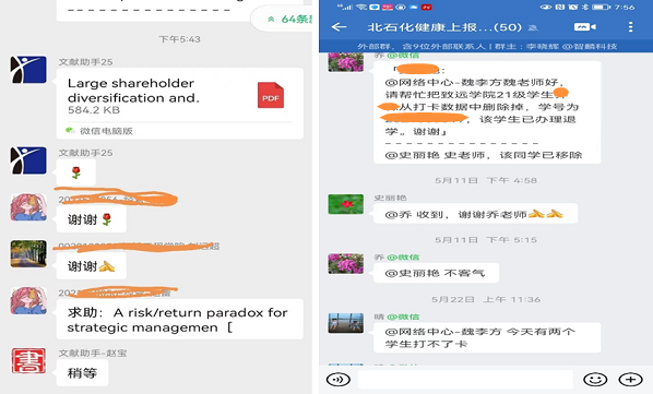 图书馆利用网页平台、图书馆微信公众号推送各类线上培训课教程和信息资讯,并提供实时在线咨询服务,通过电子邮件、微信等实时回答读者问题;加大“科研文献服务”教师群的服务力度,及时满足教师的文献信息需求,每日早8至晩10长时间实时在线服务,最大限度为教师提供免费的知识服务,目前服务在线教师人数约700人,5月份提供文献1606篇,文献满足率达95.5%。
