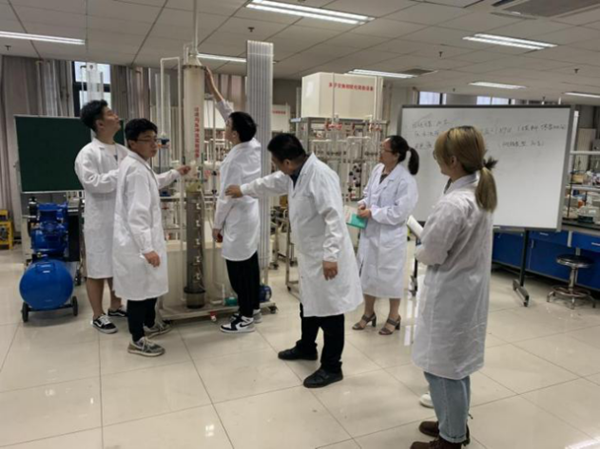 在研学团队的协调帮助下,官地村党支部书记杜富与支委会成员来到北京石油化工学院,参观集学、电磁学、光学、热学、近代物理等领域的集科学性与趣味性于一体的物理实验中心。