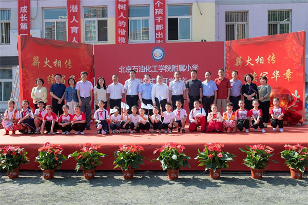 9月1日上午,北京石油化工学院附属小学揭牌仪式暨“薪火相传永赓续 合众前行再启航”开学典礼举行。学校党委常委、副院长靳海波,党委常委、对外合作处处长何晓红等相关领导,大兴区政协副主席、教委主任赵建国等相关领导及枣园小学领导师生共约500余人参加仪式活动。