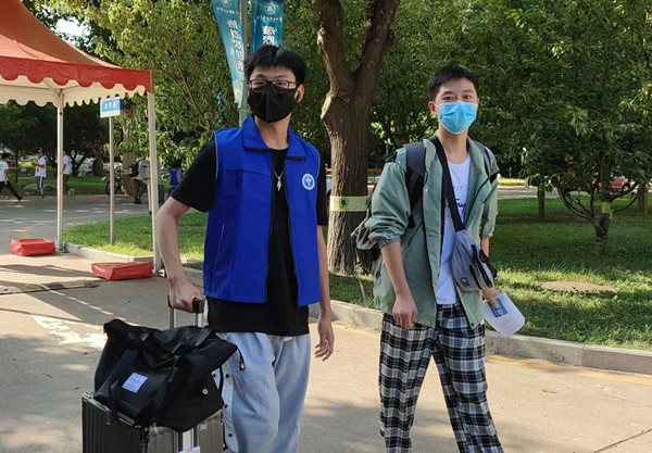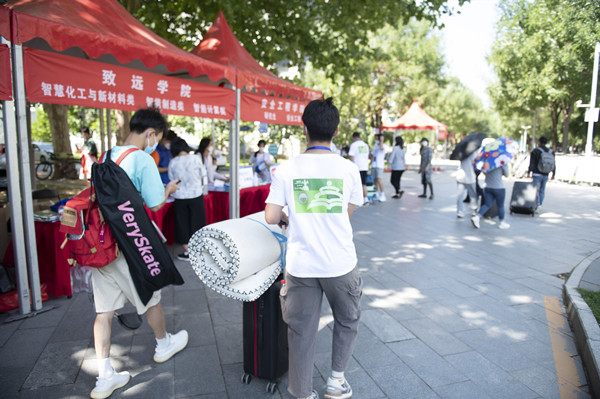 “同学你好!你是哪个学院的?我来帮你拿行李!”为保证迎新工作有序进行,学校招募了大批校园志愿者协助新生入校。志愿者们奔波在校园各处,为新生引路、搬运行李、解答疑惑,让新生倍感温暖。