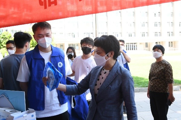 校领导十分关心报到进展,党委书记刘颖、院长罗学科来到工作现场,看望师生,了解新生报到情况。他们逐一走访各个接待点,详细了解入学手续办理、住宿宿舍安排、志愿服务开展、后勤保障提供等情况,对工作的安全有序、高效井然表示肯定,并与学生亲切交流。