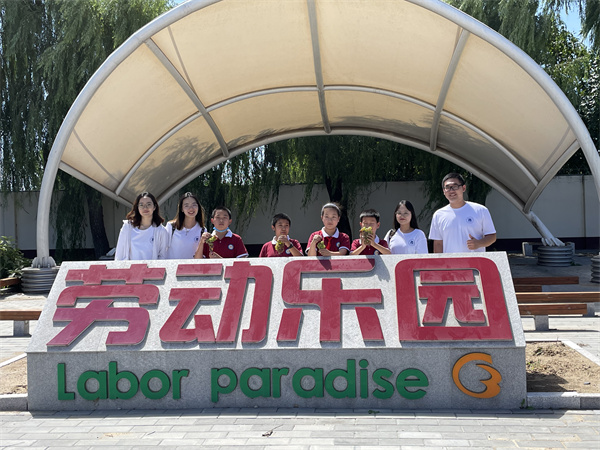 学习之余,团队成员们与采育三小的小朋友们一起参加实践劳作,提高小学生们的动手能力,培养他们的劳动意识。