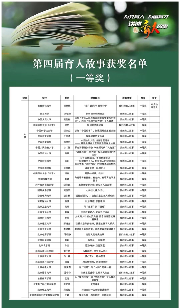 在第38个教师节来临之际,由北京市委教育工委、市教委主办,市学校德育研究会承办的第四届北京市大中小幼教师讲述我(我们)的育人故事展示交流活动在京举办。我校马克思主义学院教师黄小惠副教授脱颖而出,荣获一等奖。