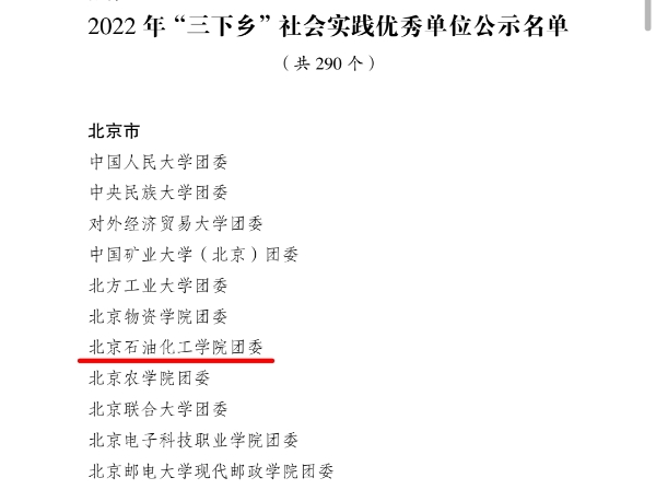近日,共青团中央公布了全国在2022年“三下乡”社会实践活动中表现突出的优秀集体、个人和项目。我校团委荣获2022年全国大中专学生志愿者暑期“三下乡”社会实践活动优秀单位。
