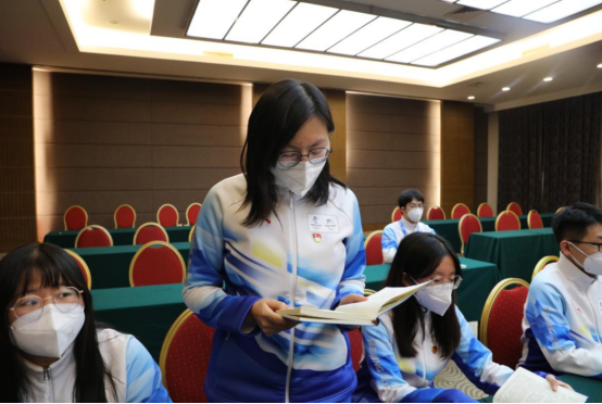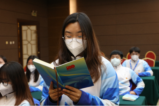 许竣宁:“我最近聆听了习近平总书记对冬奥工作的寄语,习近平总书记关心我们的生活,也十分关心我们大学生群体北京冬奥会、冬残奥会闭环管理期间的学习情况,让我们感到十分温暖。习近平总书记表示,现在作为冬奥志愿者的我们代表了北京和中国的形象。我们一定牢记习近平总书记的殷切嘱托,尽职尽责服务好北京冬奥会、冬残奥会,展现北石化青年的蓬勃朝气!”
