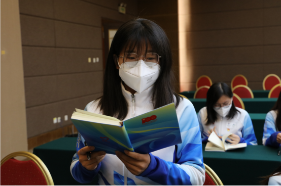 袁娟:“北京作为双奥之城,在此次冬奥中备受瞩目,聆听了习总书记的讲话,我也意识到了自己肩上所担负的责任,我一定会全力以赴完成冬奥志愿服务,能在总书记的指导下完成志愿活动,我倍感光荣与欢愉,我定当在志愿活动中讲好中国故事,为这场冰雪盛宴贡献北石化学子的青年力量!”