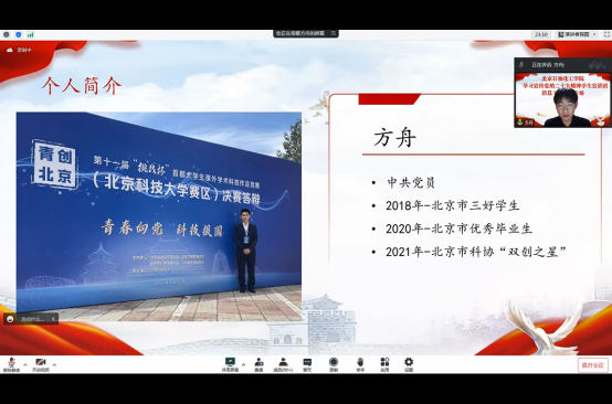 方舟同学以“科技报国,献礼二十大”为题分享了自己科技创新的心路历程。我们要不断向科技的广度和深度进军,用科技的力量谱写时代华章。