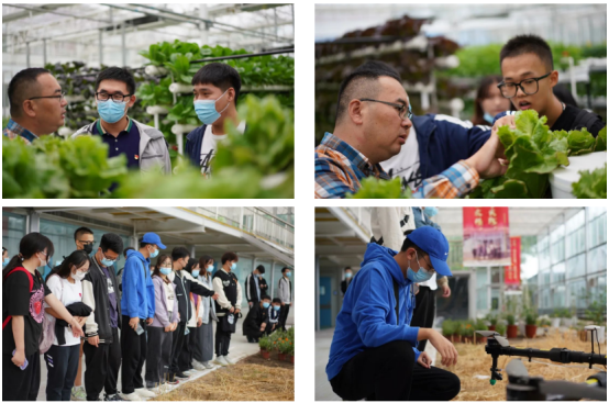 在智慧农业实验温室内,水质监测系统、智慧蜂箱、植保无人机、智能无人拖拉机、五合一新型太阳能传感器、智慧农业控制终端、智能植物生理检测仪、智慧农业卷膜通风控制器等智慧农业科技成果引得同学们阵阵惊叹。