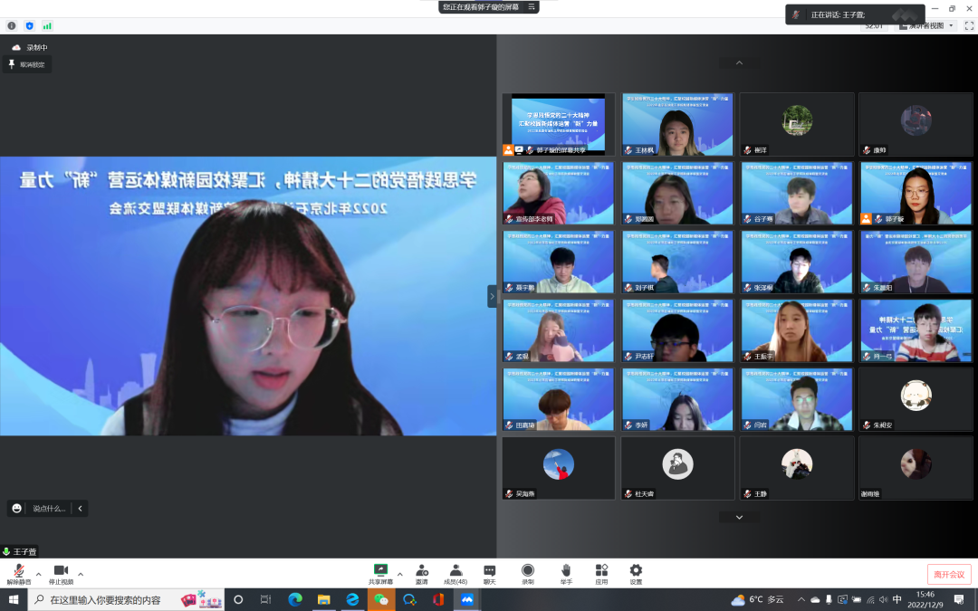 校党委宣传部副部长兼教师工作部副部长、新闻中心主任李林琳老师,校团委书记崔洋老师、副书记谷子骞老师、学生会秘书长杨哲老师,以及学校新媒体中心、校团委信息传媒部、校学生会宣传部、各二级学院新媒体公众号负责人及指导老师共50余人线上参加本次交流会。会议由校团委副书记谷子骞老师主持。