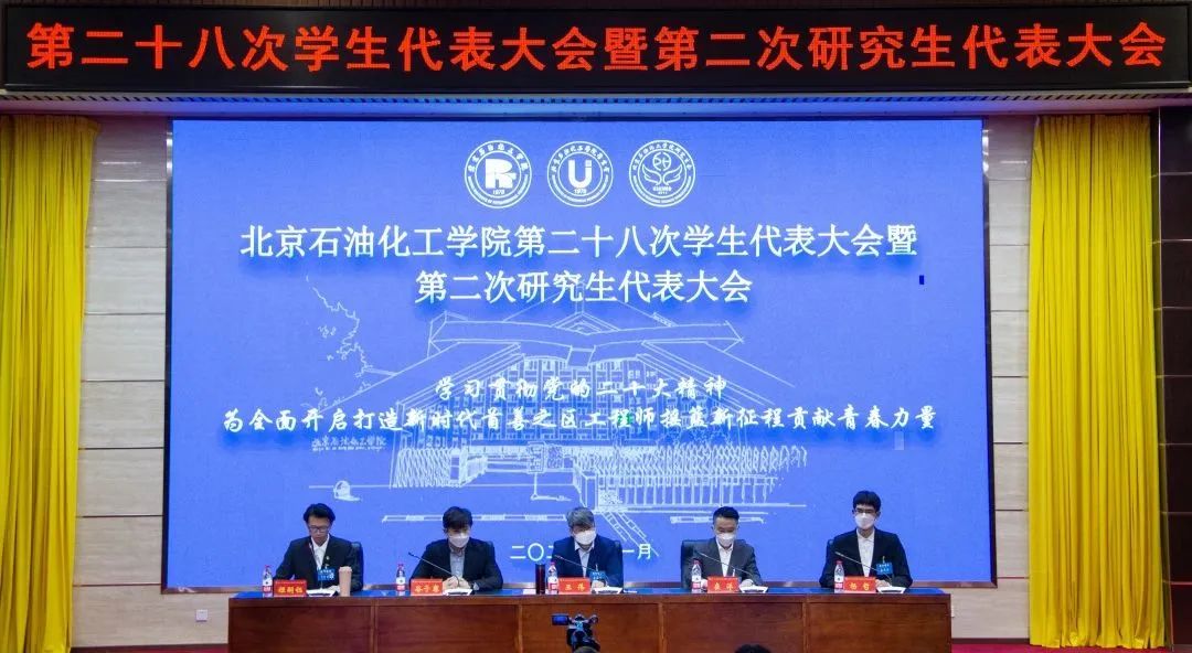 2022年11月27日,北京石油化工学院第二十八次学生代表大会暨第二次研究生代表大会召开。本次大会严格遵守防疫要求,采取以致远讲堂为主会场,全体学生代表和列席嘉宾线上参会的方式召开。本次大会的主题是:高举中国特色社会主义伟大旗帜,以习近平新时代中国特色社会主义思想为指导,深入学习贯彻党的二十大精神,学习贯彻学校第四次党代会精神,贯彻落实第六次团代会精神,回顾和总结上一次学生代表大会暨研究生代表大会以来各项工作所取得的成绩和经验,明确今后我校学生会和研究生会建设和发展的目标任务,更好地引领同学思想,服务同学成长,团结带领全体同学为全力打造新时代首善之区工程师摇篮、建设特色鲜明高水平应用型大学贡献青春力量!