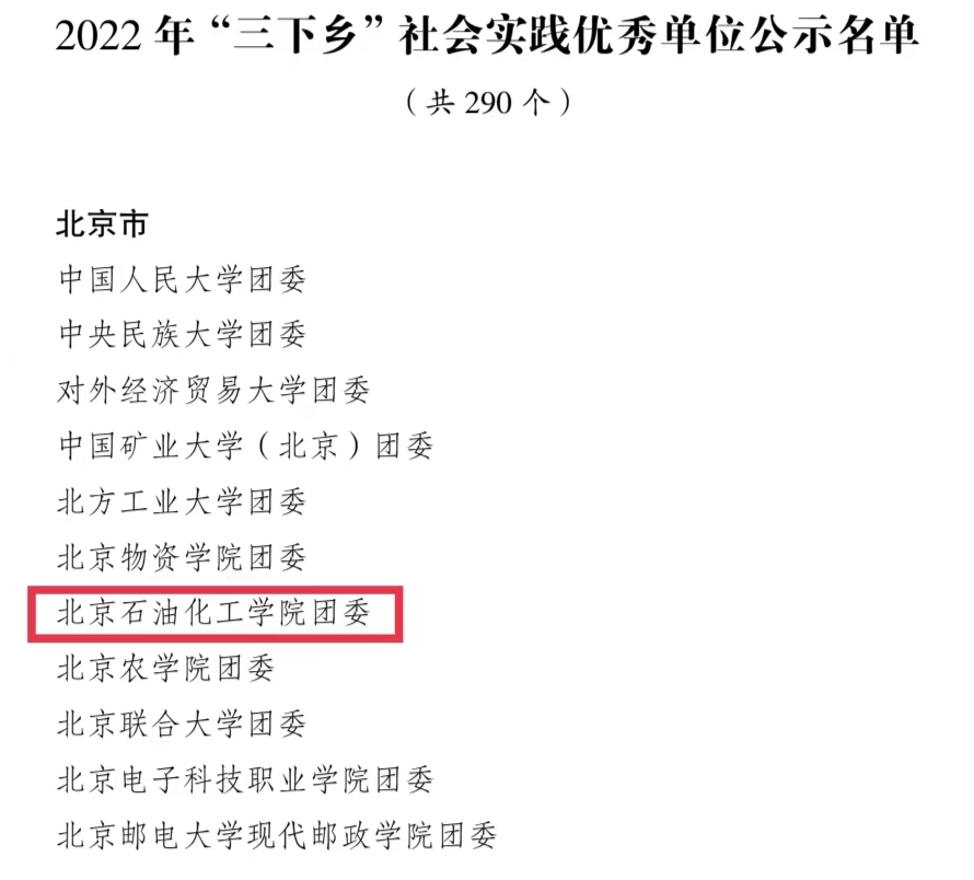 2022年10月,共青团中央公布了全国在2022年“三下乡”社会实践活动中表现突出的优秀集体、个人和项目。我校团委荣获2022年全国大中专学生志愿者暑期“三下乡” 社会实践活动优秀单位。