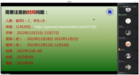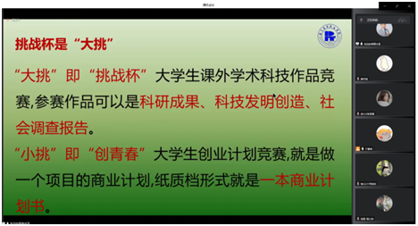11月21日下午,应校团委邀请,经济管理学院张远老师针对大学生课外学术科技作品竞赛为北石化学子进行了培训讲座,主要面向有意向参加第八届“致远杯”北京石油化工学院学生课外学术科技作品竞赛暨第十八届“挑战杯”全国大学生课外学术科技作品竞赛校内选拔赛的同学。因受疫情影响,讲座调整到线上进行,共分为“致远杯”竞赛解读和项目答疑两个环节,本次讲座已达腾讯会议人数上限,共300人参加。讲座由于馨尧老师主持。