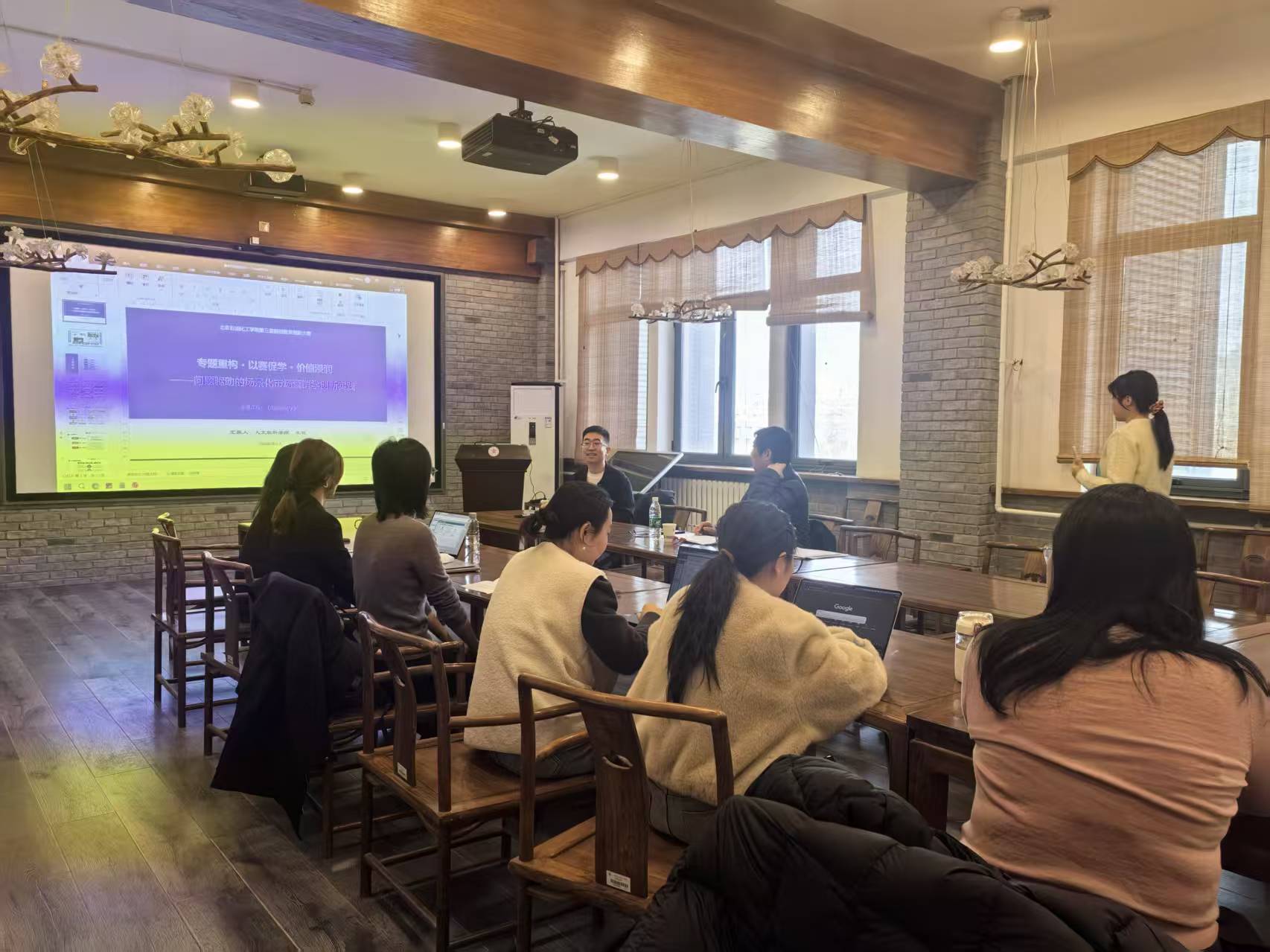 比赛由学院副院长李思琦主持,学院党委书记王荣霞、参赛教师及青年教师代表参加。本次比赛特邀北京市教学名师、中央财经大学中国企业研究中心主任周卫中教授担任评委并进行点评指导。