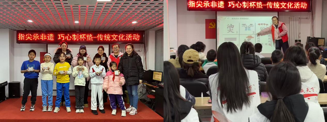 近日,为深入弘扬中华优秀传统文化,推动非遗技艺走进社区、贴近群众,我校人文社科学院 6 名学生志愿者走进清城北区社区,开展 “指尖承非遗 巧心制杯垫” 主题志愿服务活动。志愿者与社区小朋友及家长携手体验琉璃杯垫制作技艺,在指尖创作中感悟非遗魅力,在校社联动中传递文化温度。